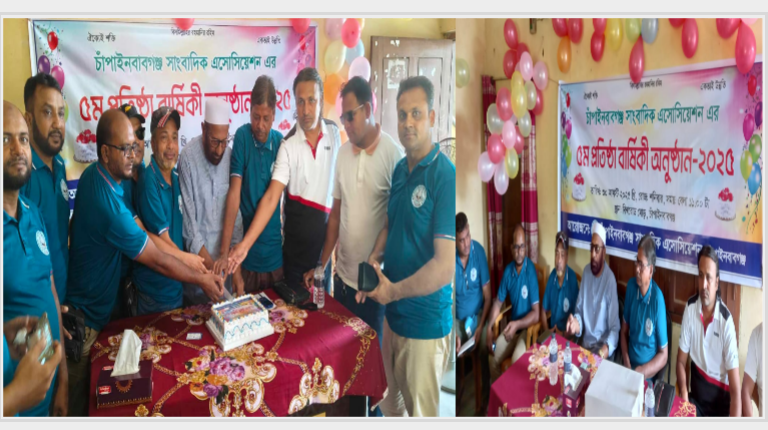 চাঁপাইনবাবগঞ্জ থেকে ফিরে, এম. এস. আই শরীফ,ভোলাহাট প্রতিনিধিঃ ঐক্যেই শক্তি, একতাই উন্নতি এই মূলমন্ত্র নিয়ে চাঁপাইনবাবগঞ্জ সাংবাদিক এসোসিয়েশনের ৫ম প্রতিষ্ঠা বার্ষিকী পালিত হয়েছে। জেলার বিশ্বরোড মোড়স্থ চাঁপাইনবাবগঞ্জ সাংবাদিক এসোসিয়েশনের হল