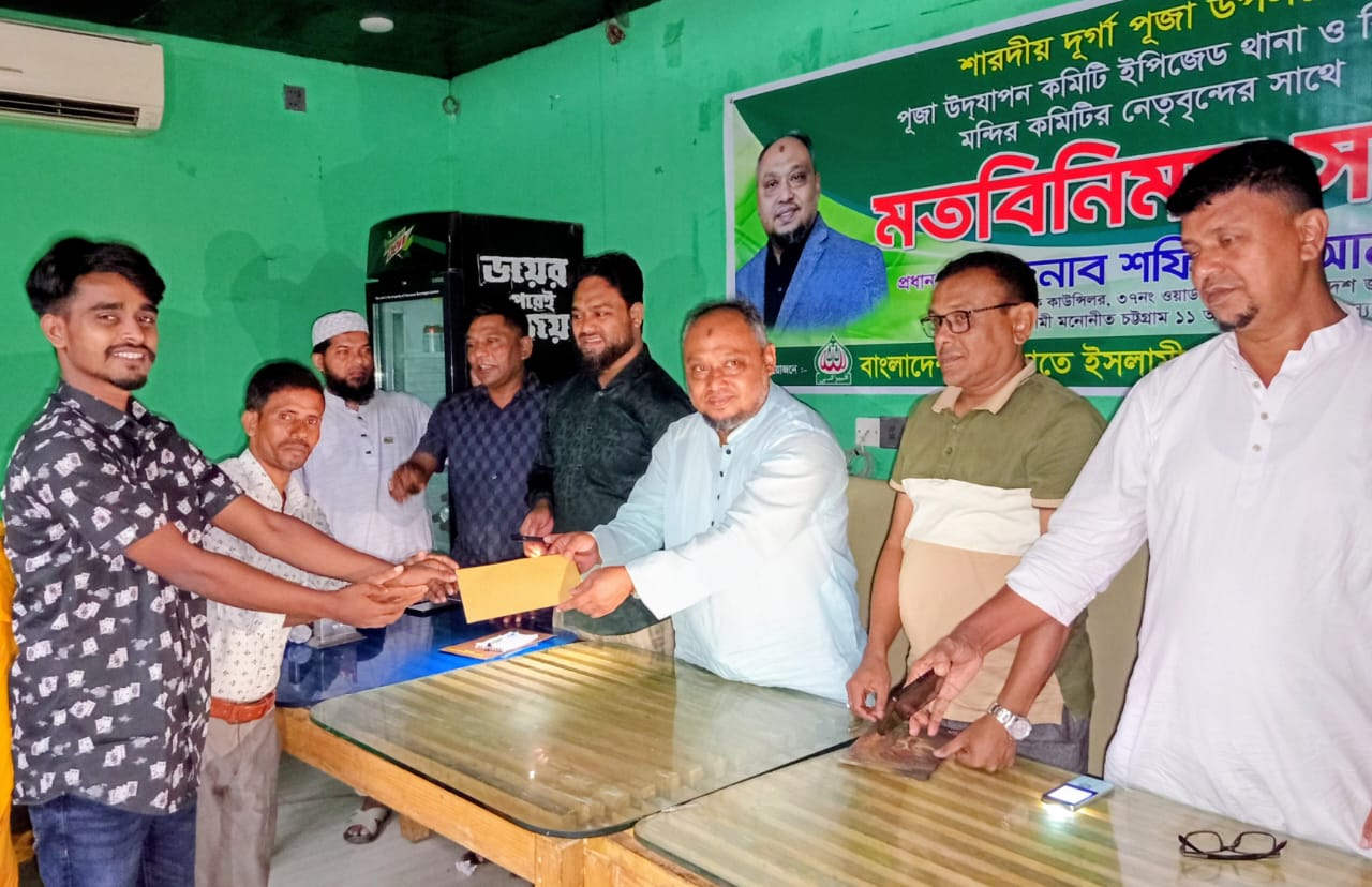 সনাতন ধর্মাবলম্বীদের বৃহত ধর্মীয উৎসব শারদীয় দুর্গাপূজা উপলক্ষে পতেঙ্গা – ইপিজেড থানাধীন পূজা উদযাপন পরিষদ,বিভিন্ন মন্ডপ ও মন্দির কমিটির সাথে বাংলাদেশ জামায়াতে ইসলামীর মনোনীত চট্টগ্রাম -১১ এর সংসদ সদস্য প্রার্থী ...বিস্তারিত পড়ুন