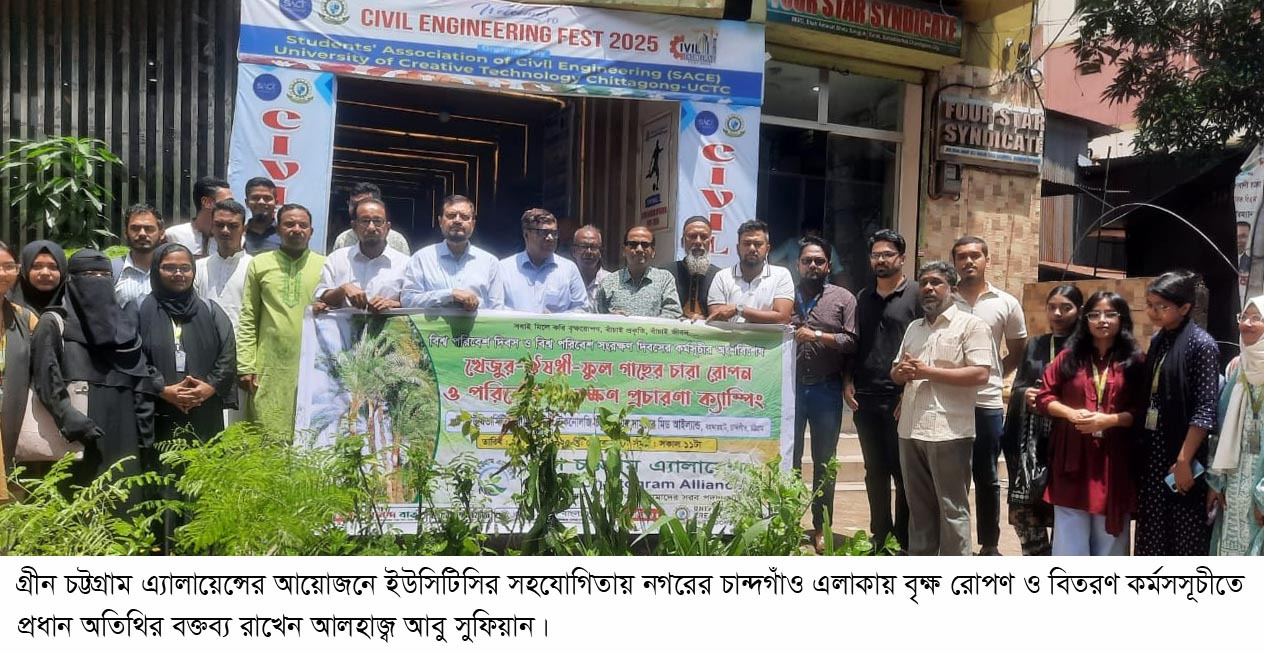 বর্ষব্যাপী মানুষকে সচেতনতা বৃদ্ধির লক্ষ্যে এবং পরিবেশ রক্ষায় দায়িত্ববোধ সৃষ্টির তাগিদে জাতীয় পরিবেশ বিষয়ক সংগঠন গ্রীণ চট্টগ্রাম এ্যালায়েন্সের আয়োজনে ইউনিভার্সিটি অব ক্রিয়েটিভ টেকনোলজি চট্টগ্রামের সহযোগিতায় আজ ২৫ আগস্ট, সোমবার, সকাল